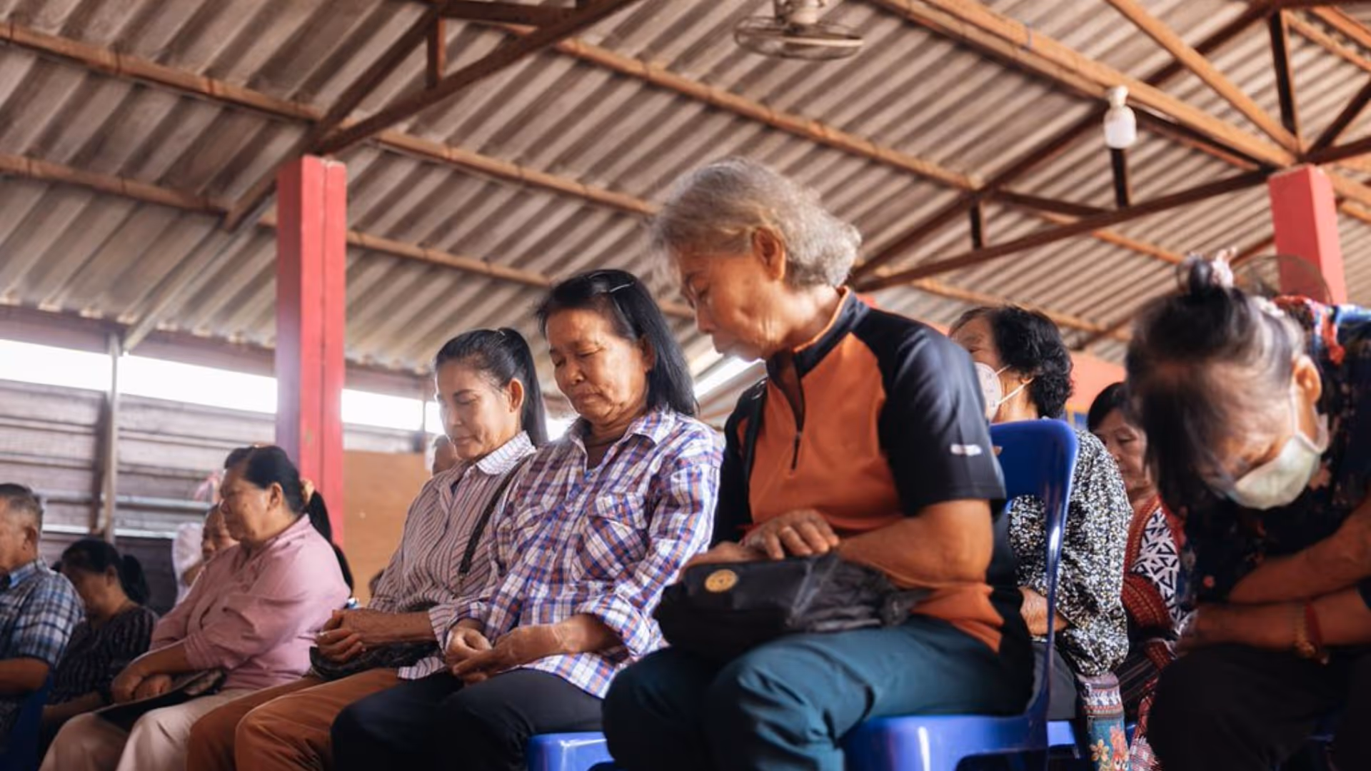 A group of elderly residents at a care facility listens intently as the team shares the Gospel. Beyond food supplies, the heartfelt prayers and encouragement brought much-needed comfort to those facing physical, emotional, and mental challenges.